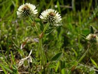 | Aussehen: | Kugelige Blütenstände von ein bis zwei Zentimeter mit zahlreichen kleinen Blüten, rot-violett oder weiß, Blätter dreiteilig gefiedert mit hellerem Fleck in der Mitte, Wuchshöhe meist bis 15 Zentimeter, selten bis zu 60 Zentimeter | |